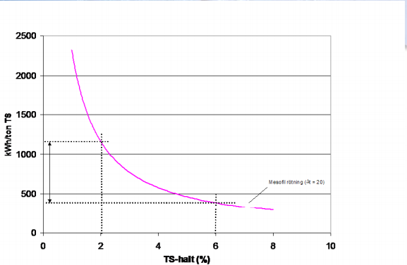 沼气池污泥浓度(%TS )和所需能耗对比